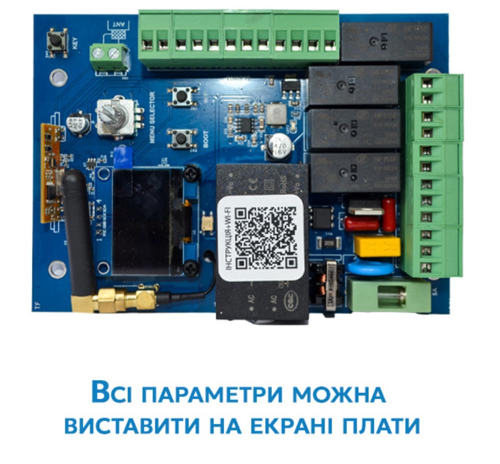 Серцем системи є сучасна плата управління з інтегрованим дводіапазонним (dual-band) Wi-Fi модулем (2.4/5 ГГц), що забезпечує стабільне з'єднання навіть у завантажених бездротових мережах. Використання частоти 5 ГГц дозволяє уникнути перешкод від інших пристроїв та забезпечити швидший відгук системи.